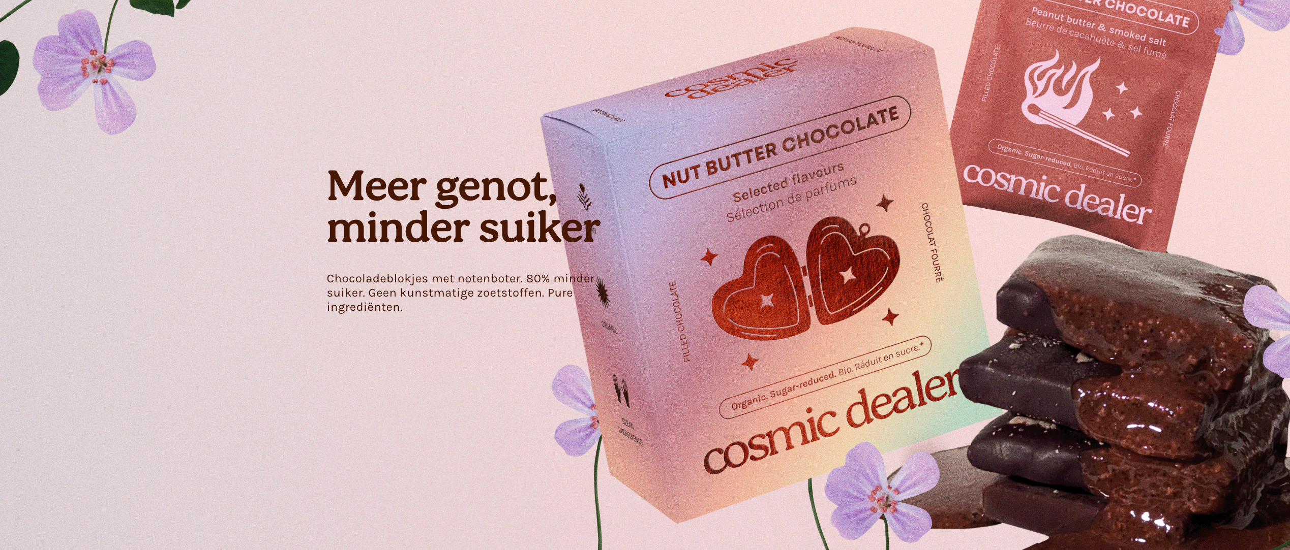Pure, gezonde lekkernijen met 80% minder suiker en zonder rare toevoegingen, plus koffiealternatieven met geen of weinig cafeïne.
