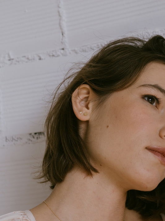 'particulas elementales' - onyx of malachiet met 18kt verguld oorbelletje