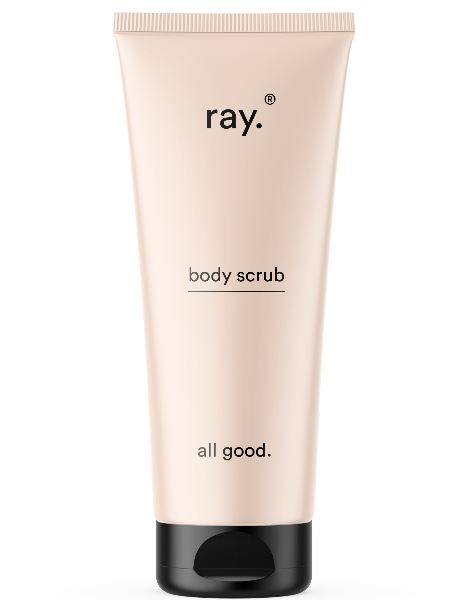 Breng de scrub aan op je handen en masseer deze zachtjes in cirkelvormige bewegingen op je huid. De geltextuur verandert in een zacht schuim tijdens het scrubben. Nadien grondig afspoelen en de huid zacht afdrogen. Sluit je verzorging af met de Ray Body Lotion.