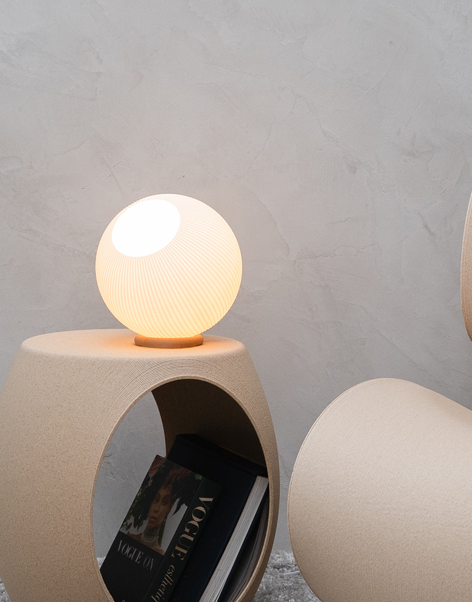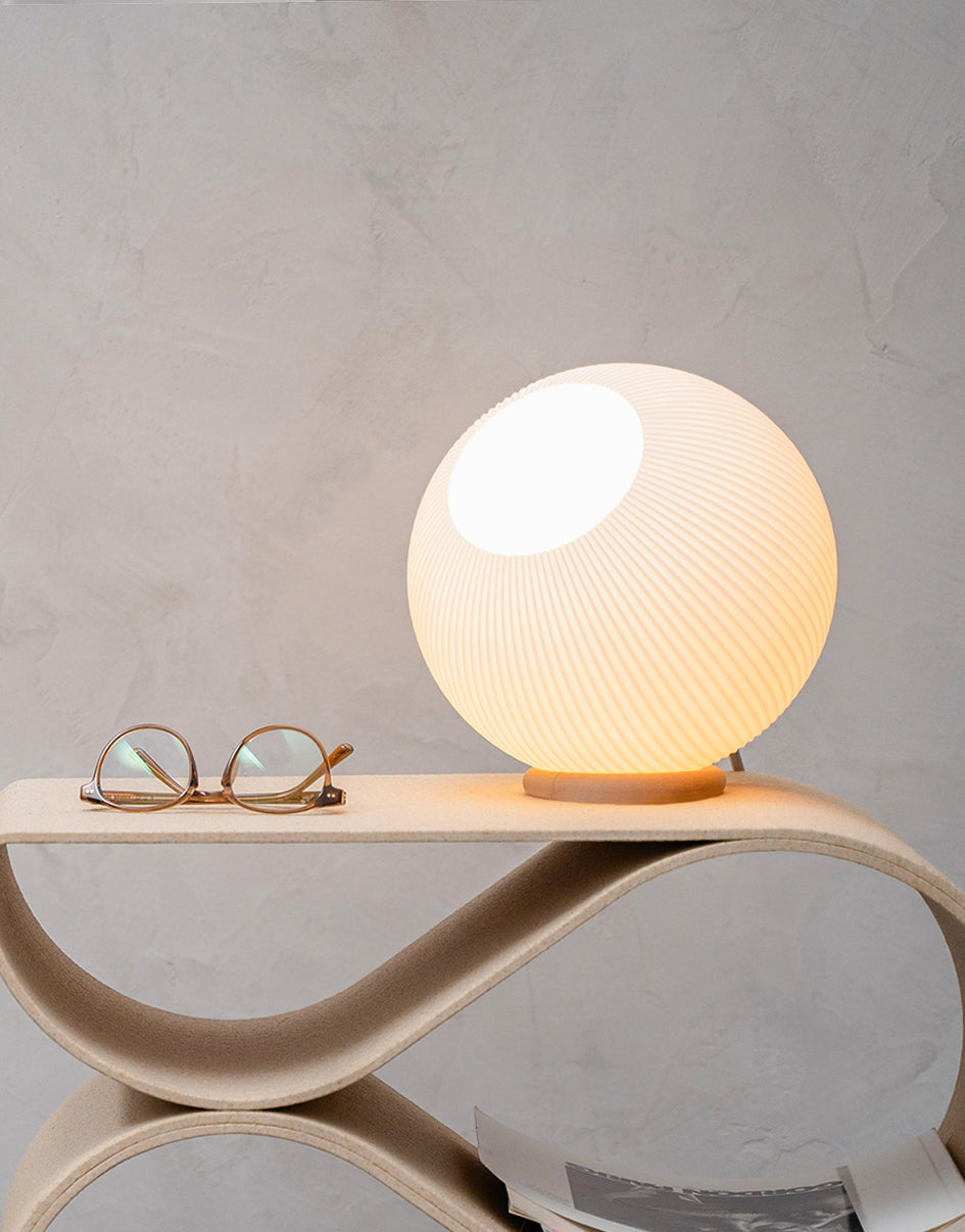 - materiaal lampenkap: Gerecyclede voedselverpakkingen (rPLA, postindustrieel)