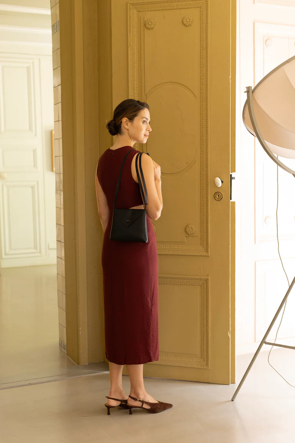 Dit tasje is perfect voor een avondje uit, en er past meer in dan je zou verwachten. De buitenzijde is gemaakt van vegan leather. De binnenzijde bekleed met een zachte stof die je spulletjes goed beschermt. Je wordt verrast door de botanische print als je je tas opent.