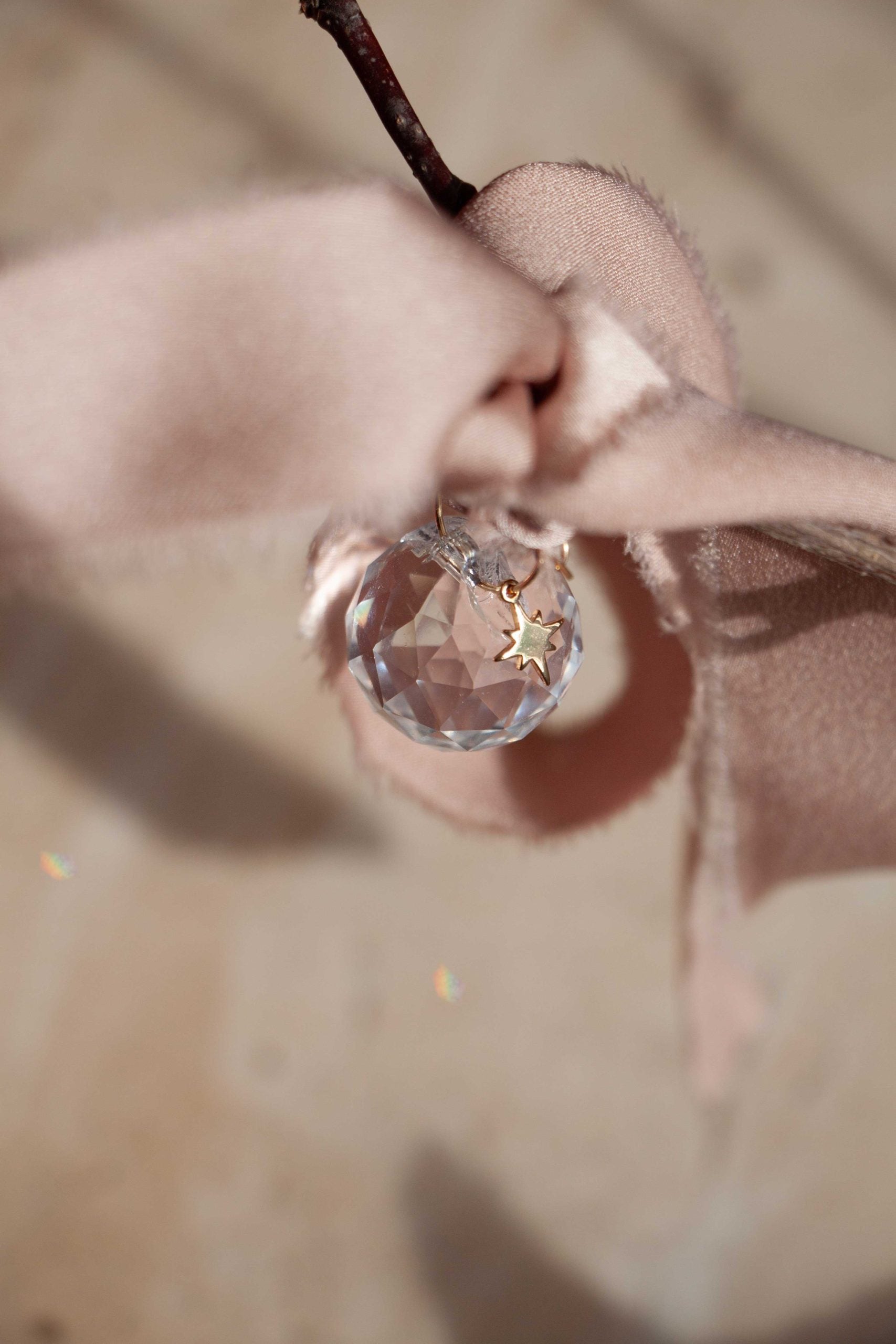 kristal zonnevanger 2 cm in een mooi doosje / messing sterretje / gedichtje / satijnen lint
