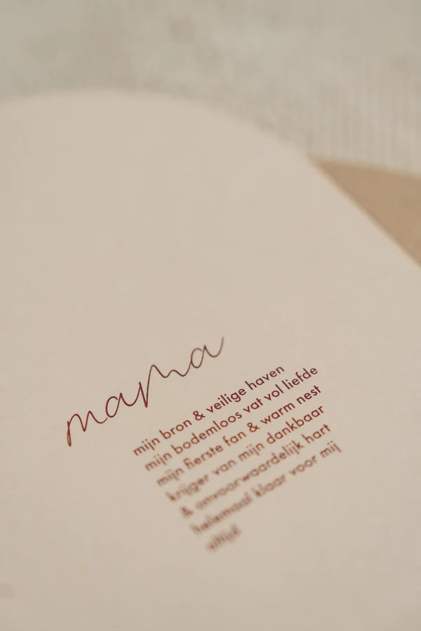 De warme woorden die je zoekt. Maar misschien niet meteen vindt. Voor je meter. Om haar te vertellen hoe erg je haar waardeert, hoe je haar bewondert, hoe je haar koestert.