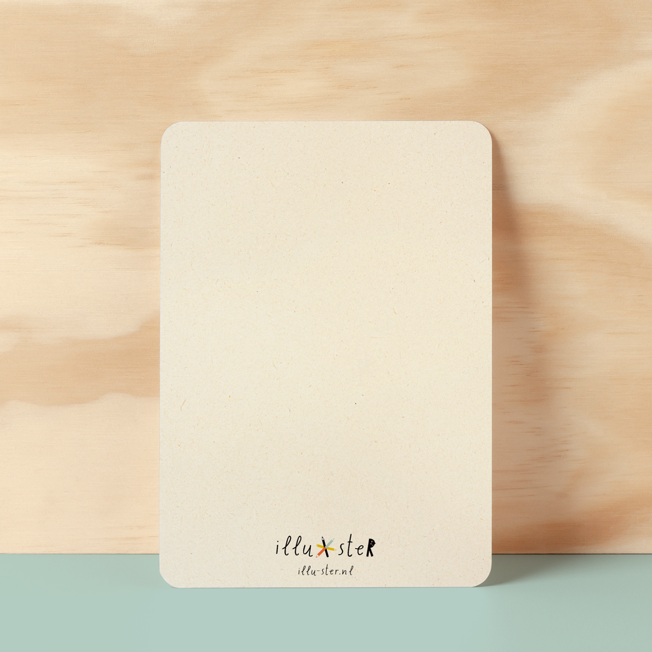 Details: donkere natuurtint met zichtbare vezelstructuur, afgeronde hoeken, bedrukte achterkant