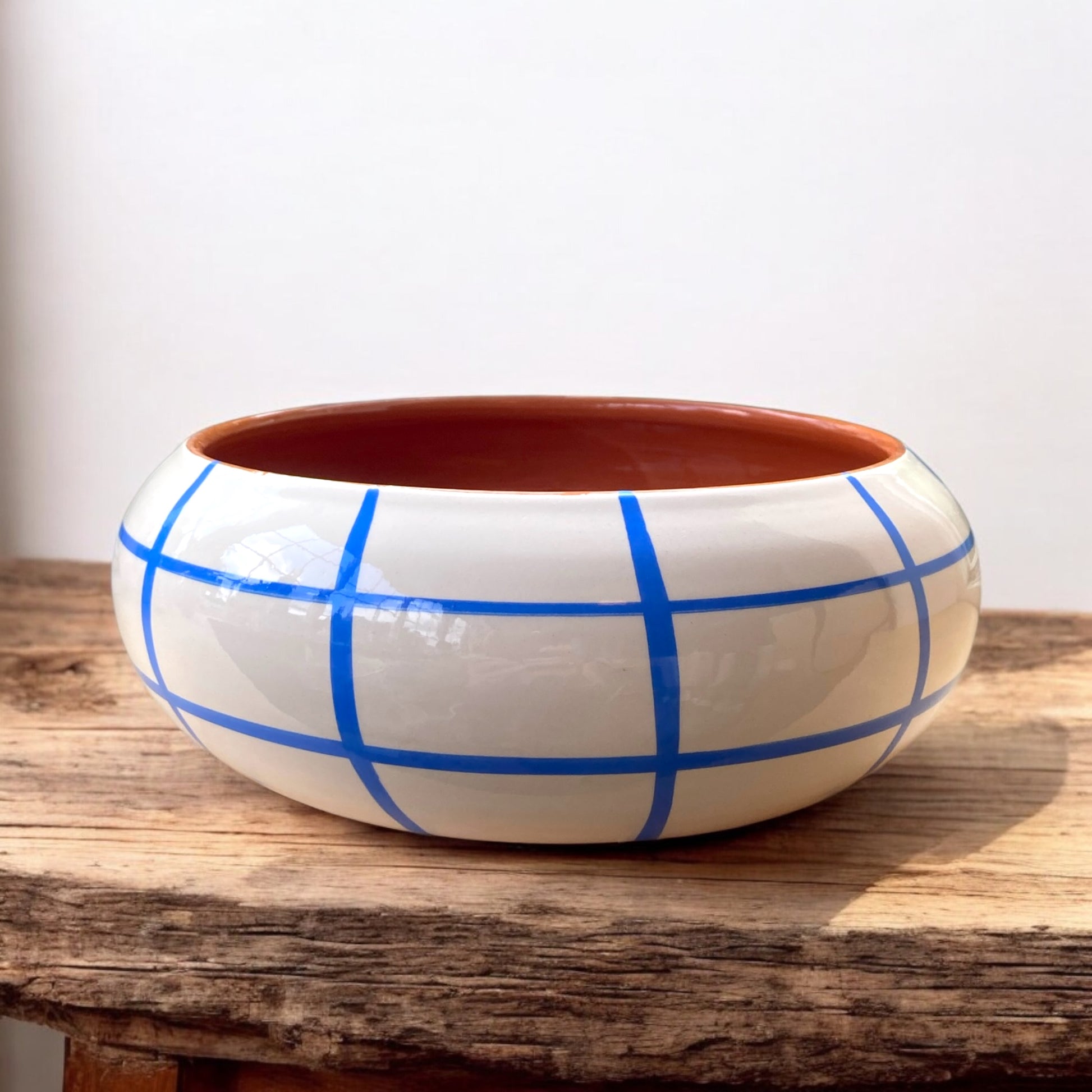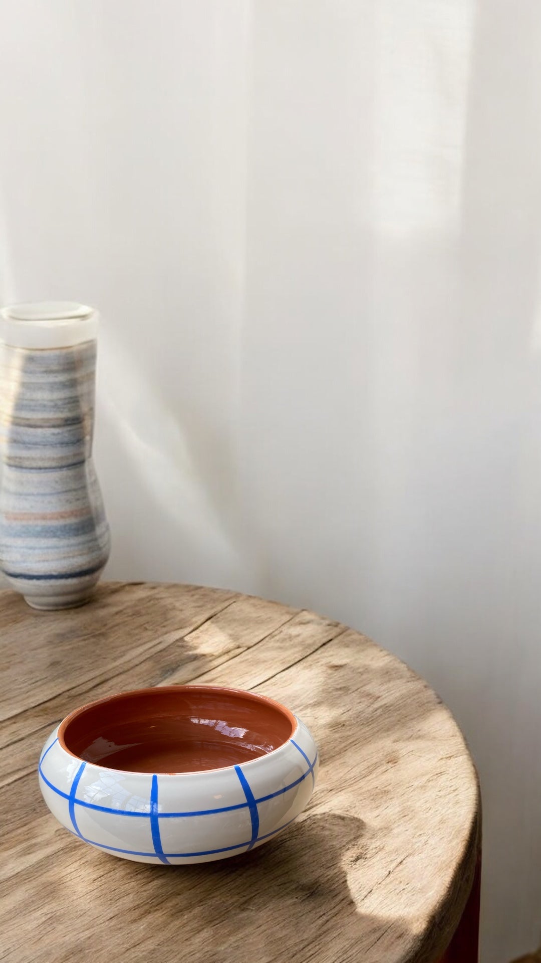 Elk stuk wordt gemaakt met behulp van een draaischijf – geen mallen hier! – en vervolgens met de hand beschilderd en geglazuurd. Hierdoor kunnen er kleine millimeterverschillen optreden tussen stukken van hetzelfde model. Maar deze verschillen maken deel uit van de unieke schoonheid en authenticiteit van dit product.