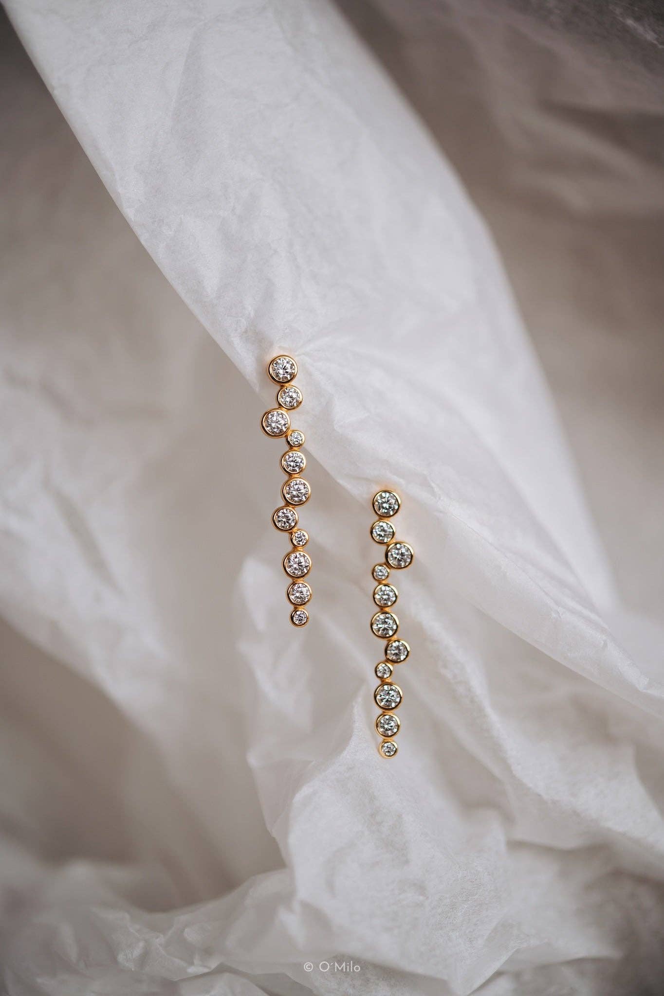 Eleonora legt elegantie in beweging vast. Een delicate waterval van kristallen schittert bij elke stap en reflecteert licht en leven. Perfect voor die onvergetelijke momenten, ze zijn een ode aan gratie en tijdloze schoonheid.