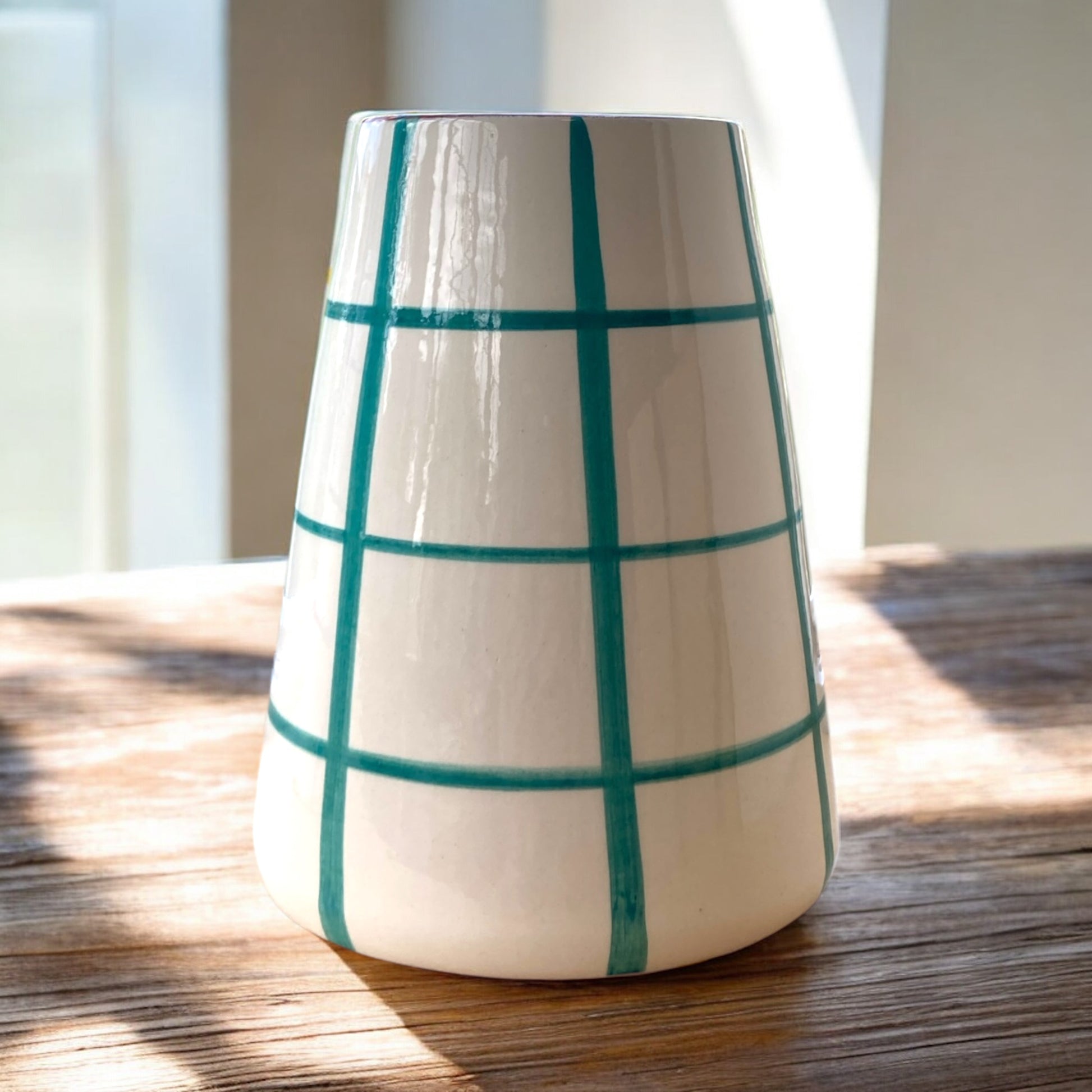 Elk stuk wordt gemaakt met behulp van een draaischijf – geen mallen hier! – en vervolgens met de hand beschilderd en geglazuurd. Hierdoor kunnen er kleine millimeterverschillen optreden tussen stukken van hetzelfde model. Maar deze verschillen maken deel uit van de unieke schoonheid en authenticiteit van dit product.